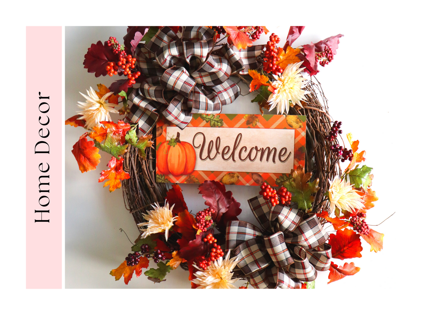 We launch our Home Decor Collection in time for the Fall Season. We will have Door Wreaths, Swags, Centerpiece, kitchen Tea Towels & more...