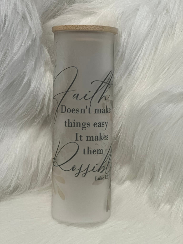 Faith Glass Can Tumbler. Frosted or Clear Glass Can style